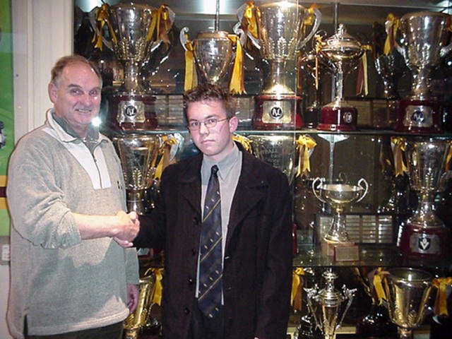 Me with Hawthorn President Ian Dicker...and yes, I am in a suit! - July 2001 |